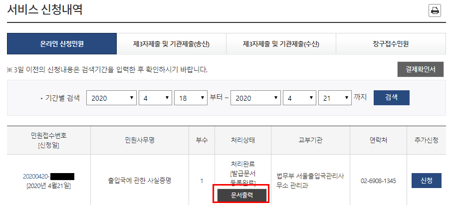 그럼 출입국에 관한 사실 증명을 신청해봅시다.